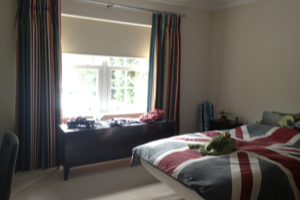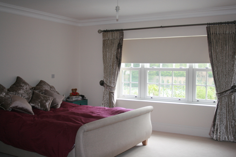 Master bedroom single curtain with double pinch pleat with box pelmet